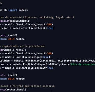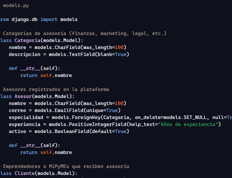 Base de datos Django: +5 modelos interconectados, panel administrativo operativo.